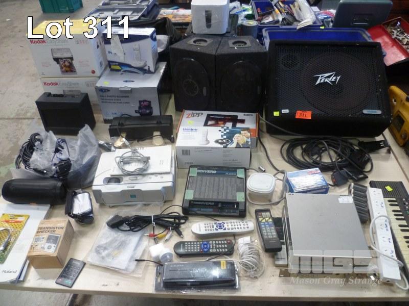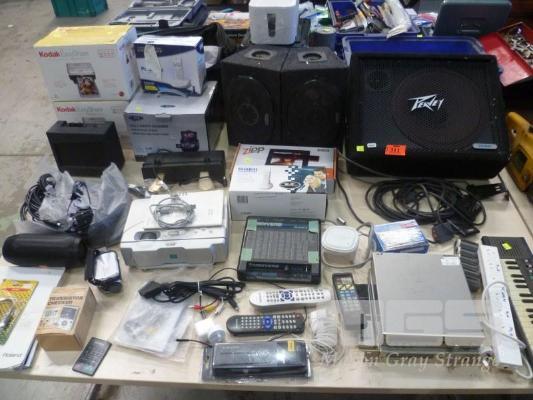 KODAK EASYSHARE 4 IN 1 PHOTO SCANNER, SONY LCD PROJECTOR, PEAVY SPEAKER, PIONEER SPEAKERS, TELEPHONES, ETC, 1 x TABLE