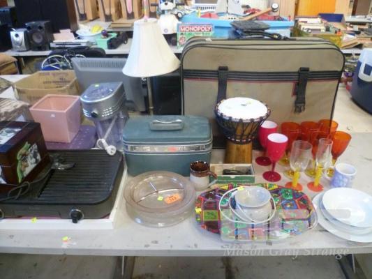 BREVILLE ELECTRIC GRILL, REMO DRUM, ORANGE GLASSES, LAMP, ETC