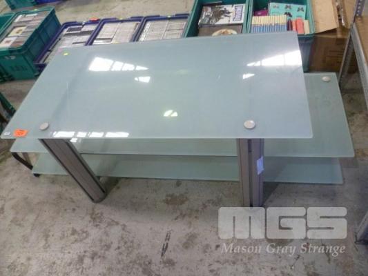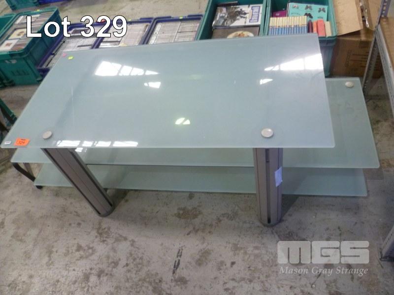RECTANGULAR COFFEE TABLE, 3 x LEVELS SMOKY GLASS, ALUMINIUM FRAME