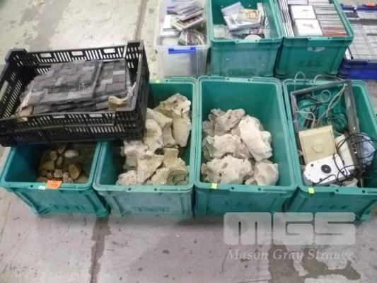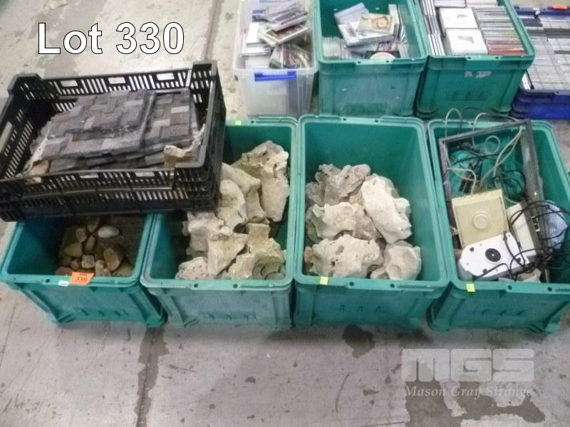 ASSORTED FISH TANK ROCKS, PUMPS, ETC, 5 x TUBS