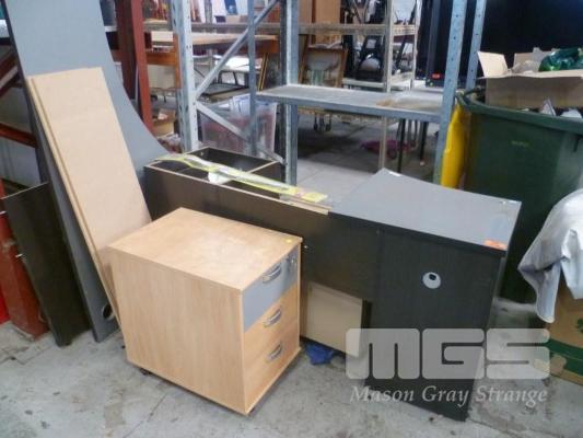 BLUE/BLACK LAMINATE CORNER OFFICE DESK WITH 3 DRAWER MOBILE
