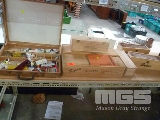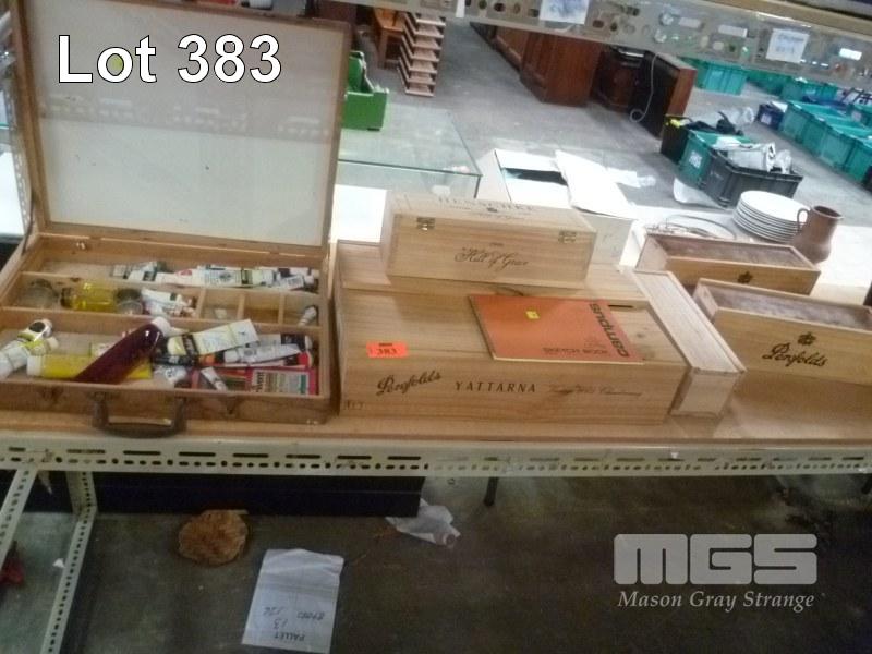 WINE TIMBER DISPLAY BOXES, & ASSORTED ART SUPPLIES