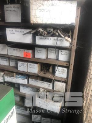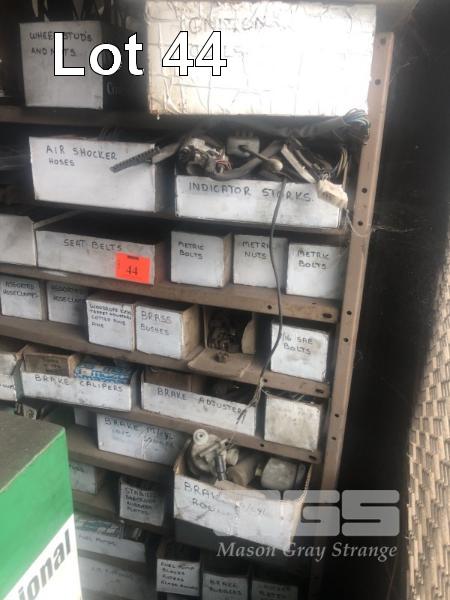 CONTENTS OF SHELF, ASSORTED CASTELLATED NUTS, BOLTS, NUT, WHEEL STUDS, BRAKE PART KITS, AUTOMOTIVE SPARES,