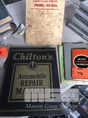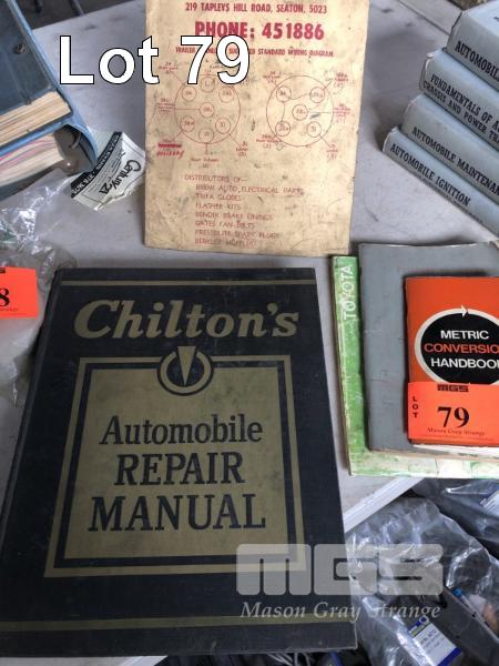 CHILTONS AUTO REPAIR MANUAL, MORRIS MINI HANDBOOK, TOYOTA LANDCRUISER EARLY OWNERS MANUAL, METRIC CONVERSION HANDBOOK