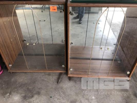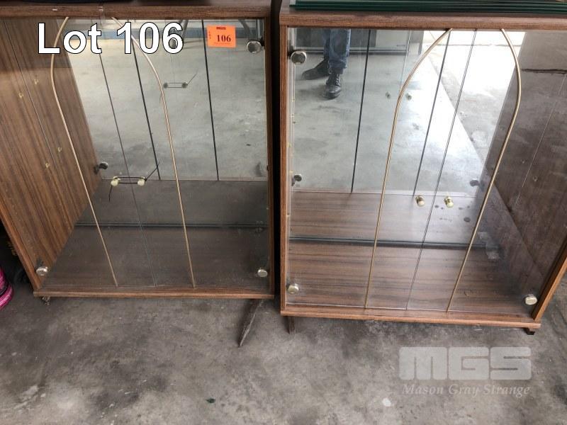 VINTAGE 4 DRAWER DESK, DOVETAIL JOINS, 1200 x 600, 2 x 2 DOOR GLASS CABINETS