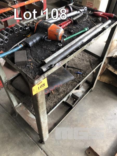 3 TIER WORKSHOP TROLLEY & TOOLS, 1/2" PNEUMATIC IMPACT GUN, DUST GUN & ASSORTED SOCKETS