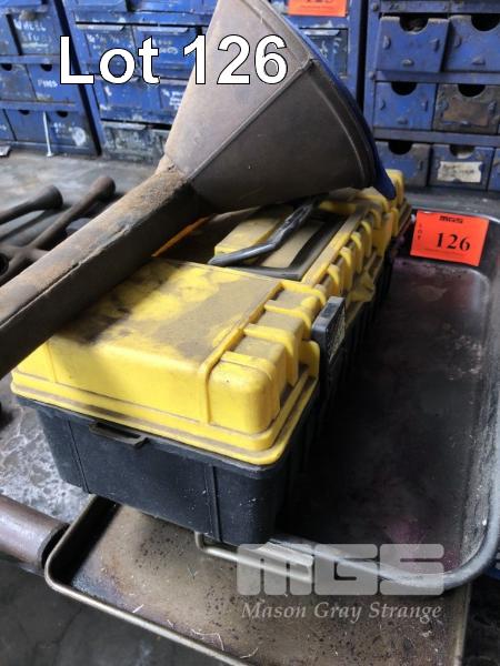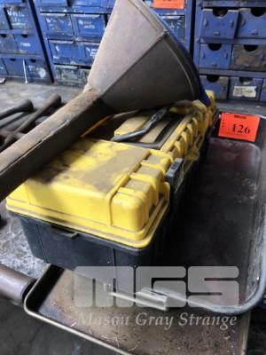 3 x STEEL SPILL TRAYS, STEEL OFFSET FUNNEL, PLASTIC TOOL SET