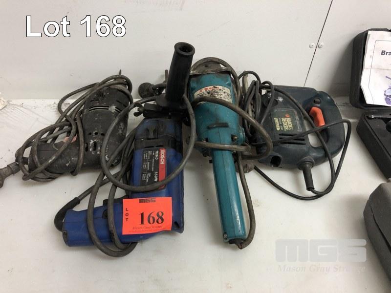 BOSCH 550w REVERSIBLE IMPACT DRILL, MAKITA 125mm ANGLE GRINDER, BLACK & DECKER JIGSAW, BLACK & DECKER HAND DRILL