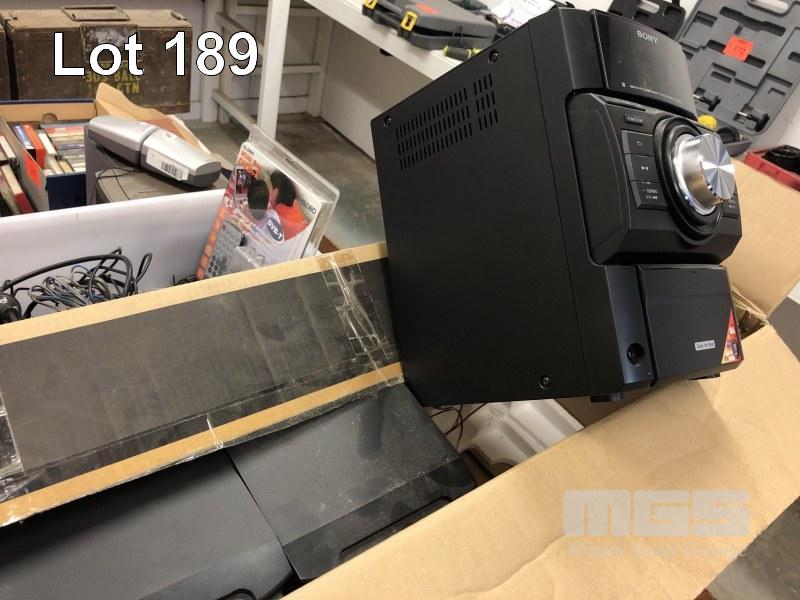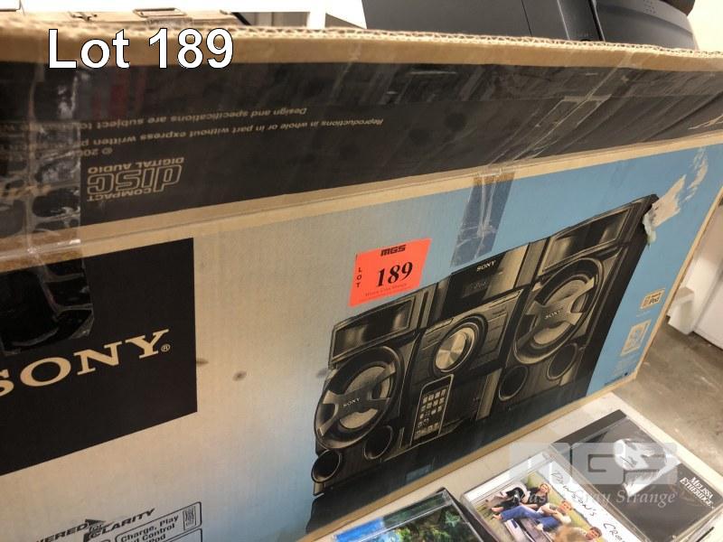 SONY CD & IPOD PLAYER WITH SPEAKERS IN BOX, (PLEASE TEST)