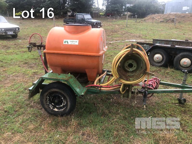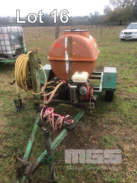 NUFARM 400L MOBILE HIGH PRESSURE SPRAY UNIT, ON TRAILER, HONDA G200 PETROL ENGINE, WITH HOSES & PRESSURE WASH GUN, 50mm COUPLER & JOCKEY WHEEL, NOTE: RUNS FINE