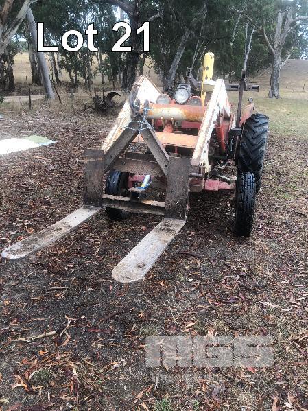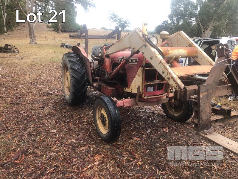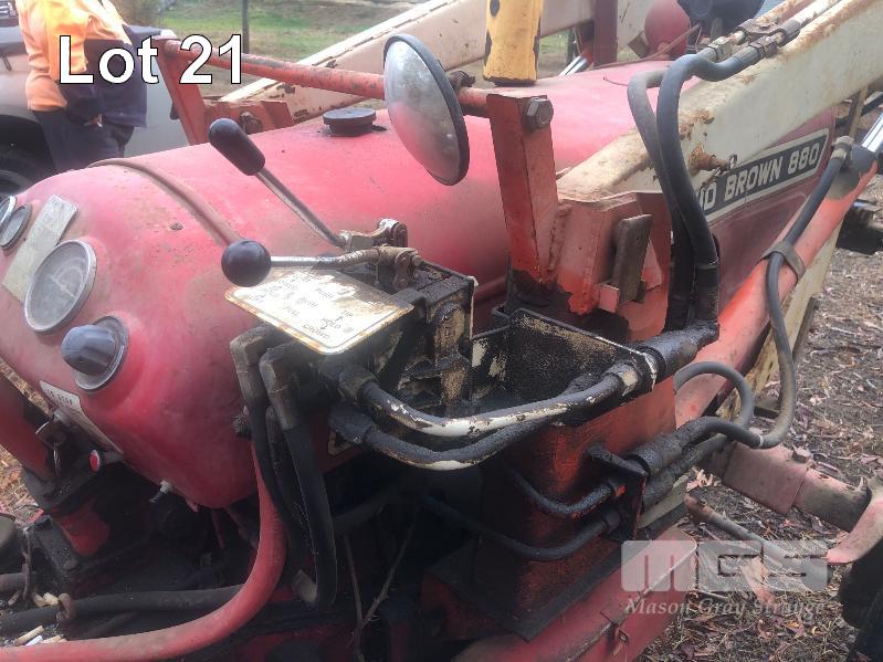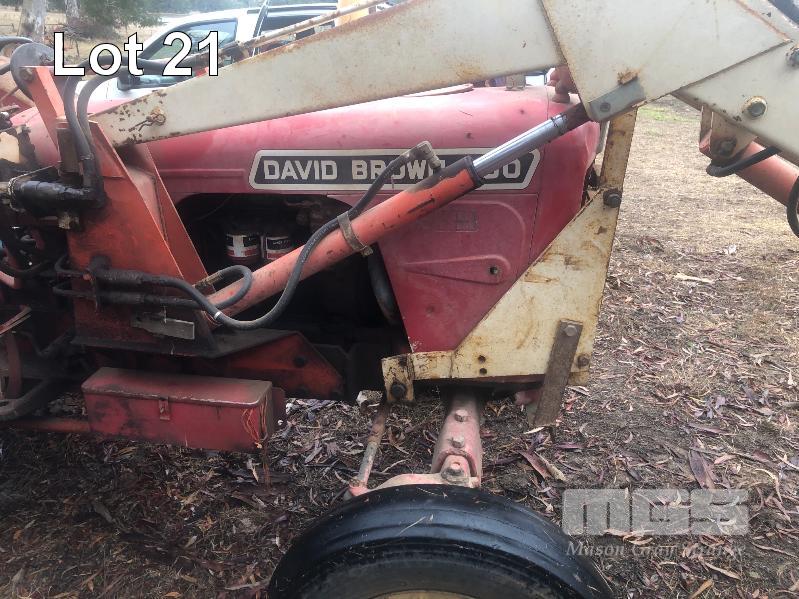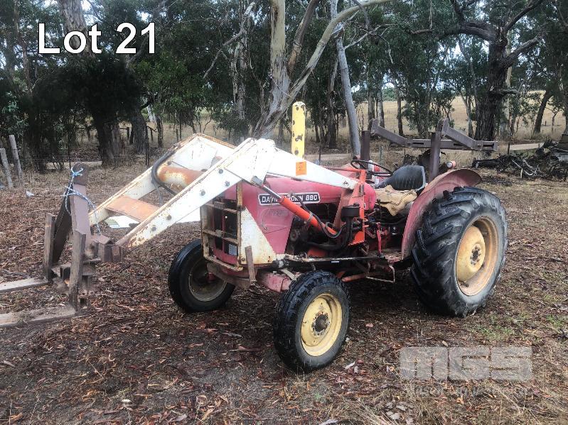 DAVID BROWN 880 TRACTOR, 2 WHEEL DRIVE, 4 CYLINDER DIESEL, 7,889 HOURS SHOWING, FRONT END LOADER BUCKET FITTED, 1650mm, WITH FORKLIFT ATTACHMENT, 3PL & PTO, WITH KEY & BOOK REG . OSP 526