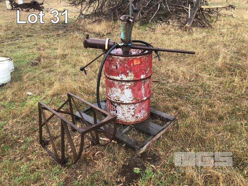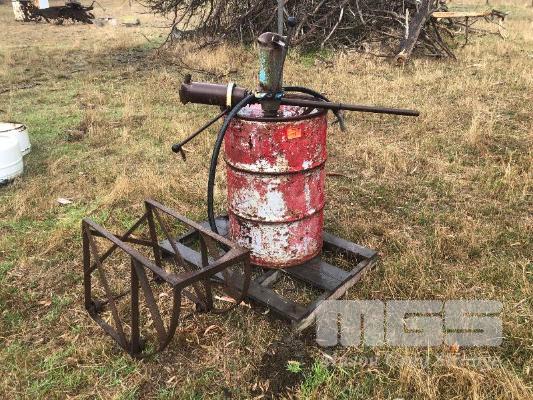 200L DRUM STAND WITH 205L DRUM & COLLECTABLE HAND PUMPS