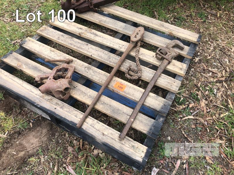 PIPE VICE, CHAIN, WRENCH & 3' STILSON