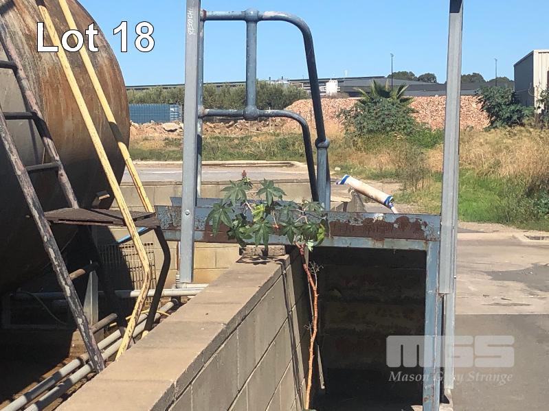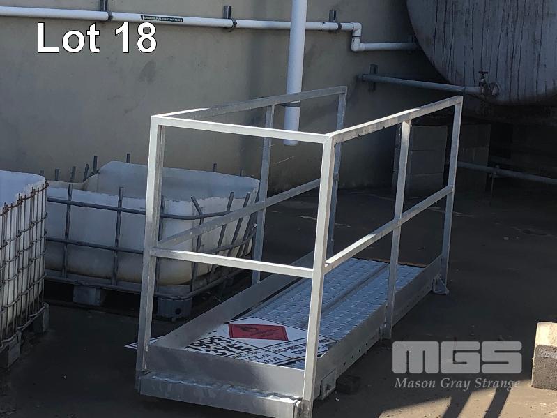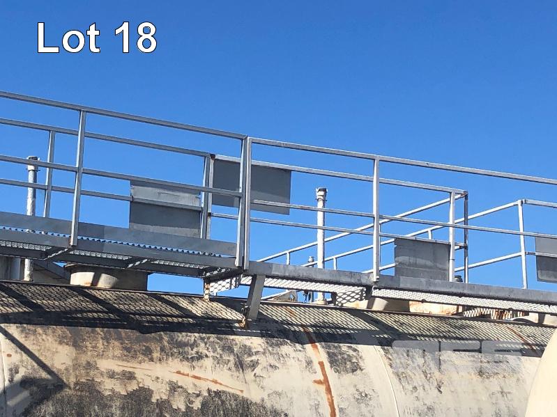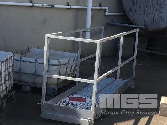 WALKWAY TO TOP OF TANKS, GALV STEEL STRETCH METAL TREADS ALL WITH HAND RAILS, PLUS EXTRA UN-USED SECTION NO HOT WORK AREA