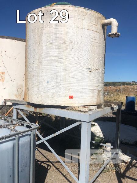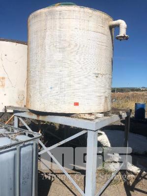 VERTICAL FIBREGLASS TANK ON STAND, APPROX 3600 LITRE EMPTY, CONTENTS UNKNOWN