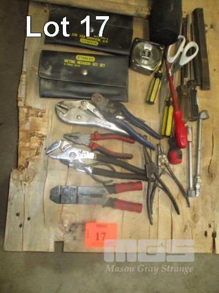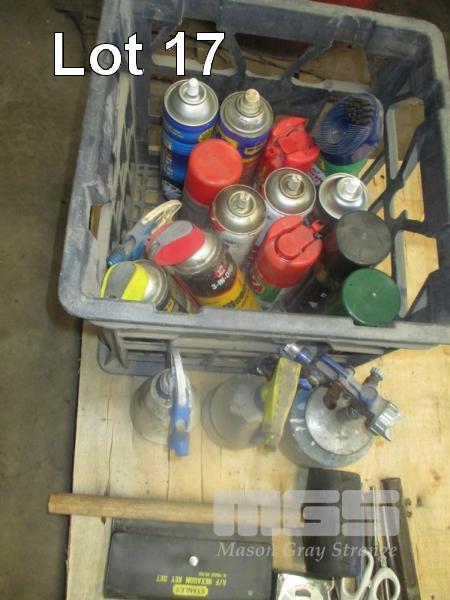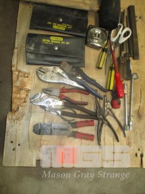 ASSORTED TOOLS, PLIERS, CLAMPS, SCREWDRIVERS & SPRAY CANS
