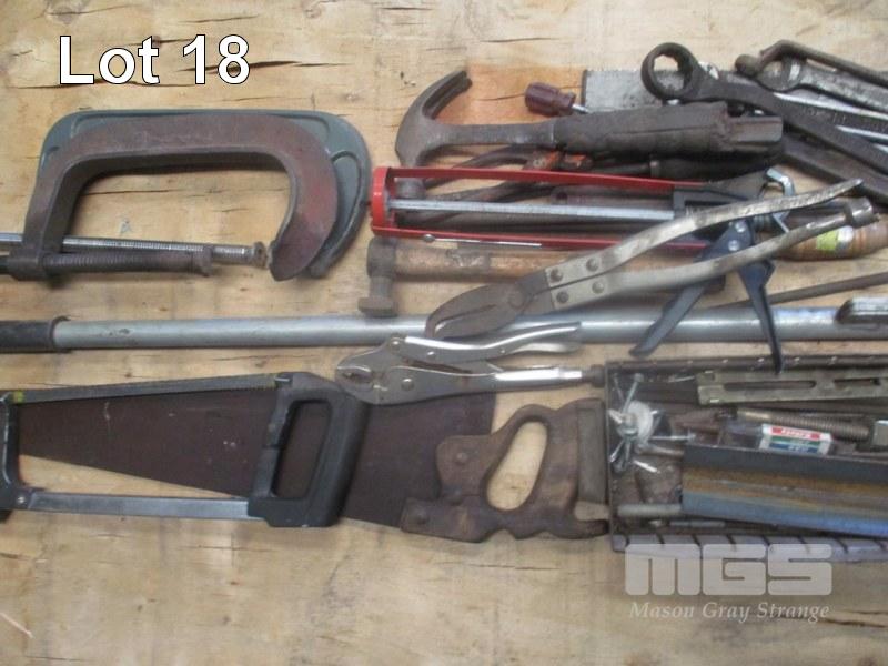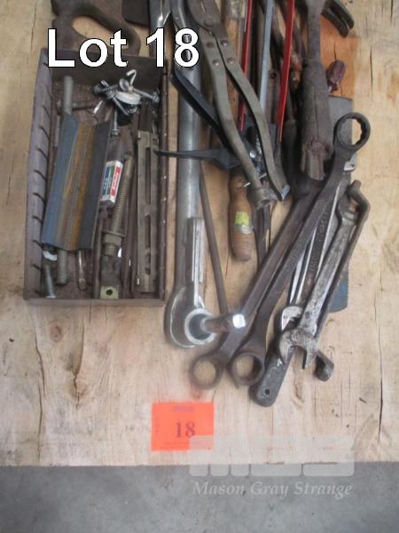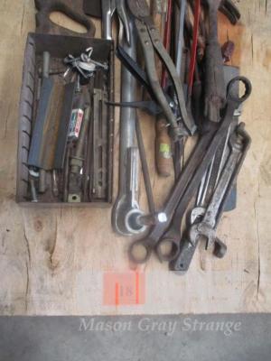 ASSORTED HAND TOOLS, SPANNERS, CLAMPS, SAWS