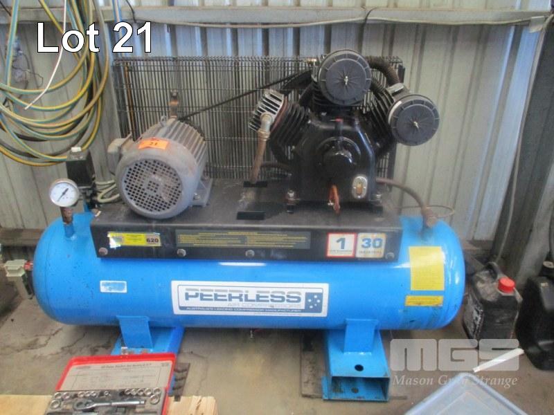 PEERLESS MOTORISED V3 CYLINDER AIR COMPRESSOR PLANT MOD: INDUSTRIAL 30 620 LITRE/MINUTE 415V 3 PHASE WITH REGULATOR & AIRLINE