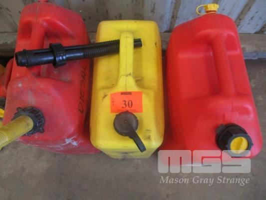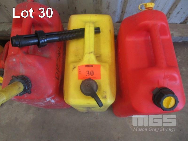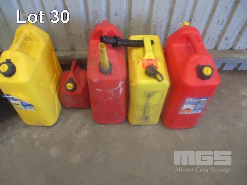 5 x PLASTIC FUEL CONTAINERS, PETROL/DIESEL