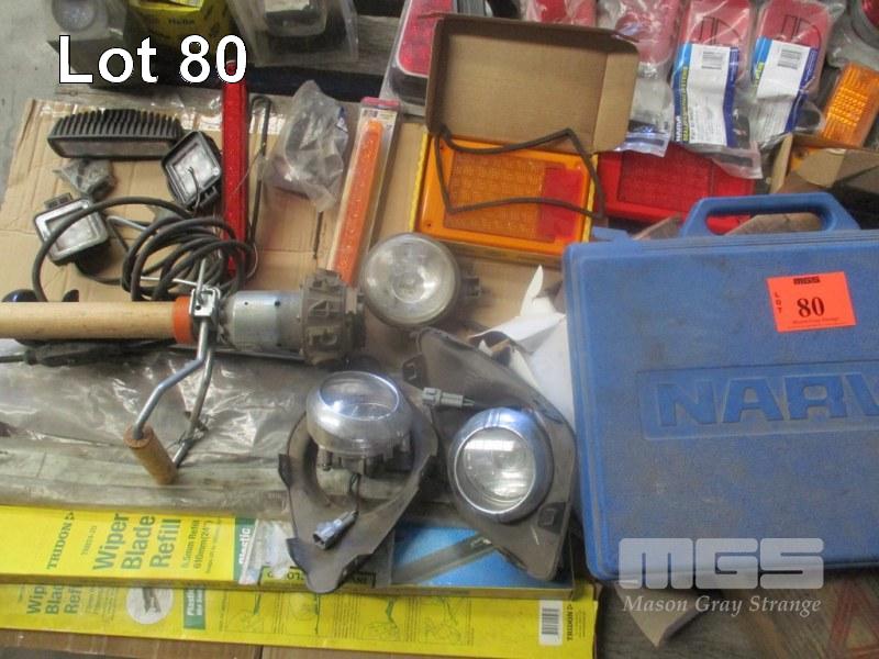 PALLET LOT ASSORTED ELECTRICAL, LIGHTS, ELECTRIC TYRE BRANDER & WIPER BLADES