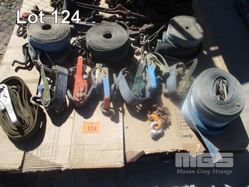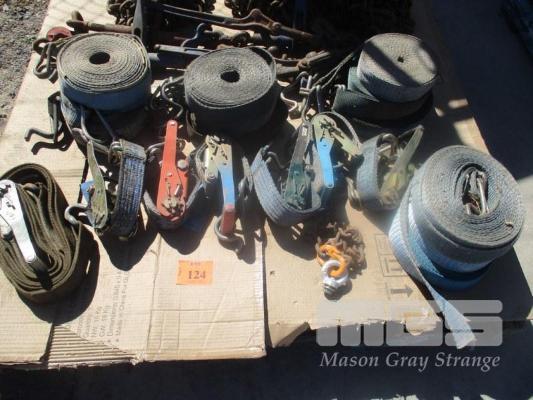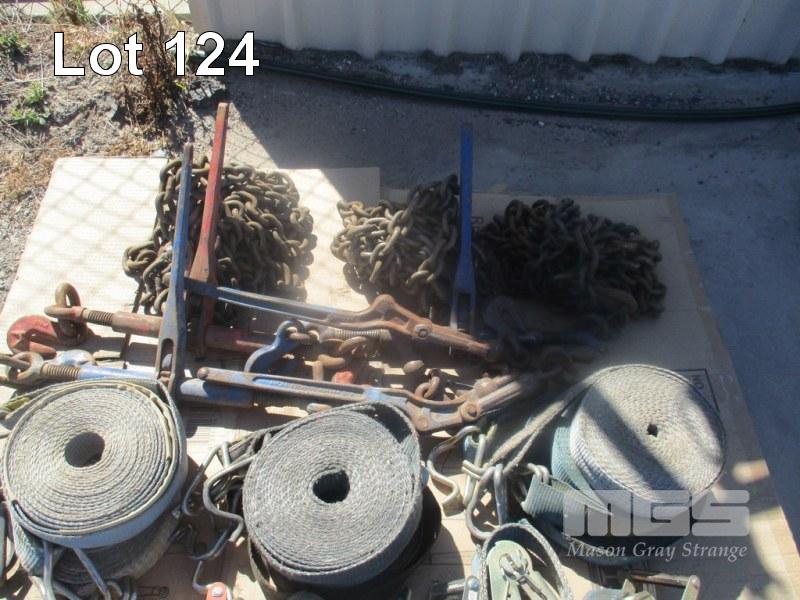 PALLET LOT, ASSORTED, 12 x LOAD BINDERS/STRAPS & CHAINS, 7 x WINCHES, 3 x WIND DOGS & 2 x OVER CENTER DOGS