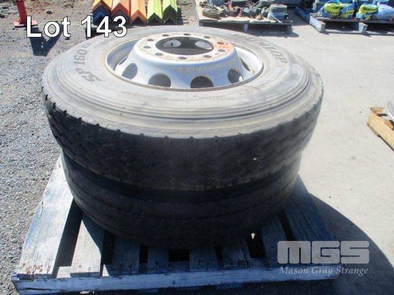 2 x STEEL 10 STUD RIMS & TYRES, SP160, 11R 22.5