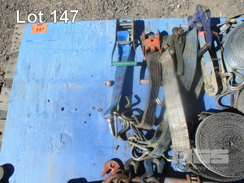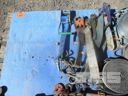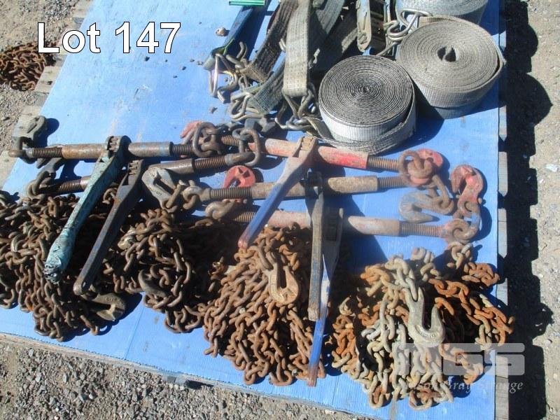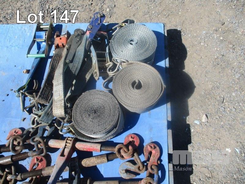 PALLET LOT ASSORTED LOAD GEAR, 5 x CHAINS, 5 x WIND UP DOGS, 6 x BINDERS & STRAPS