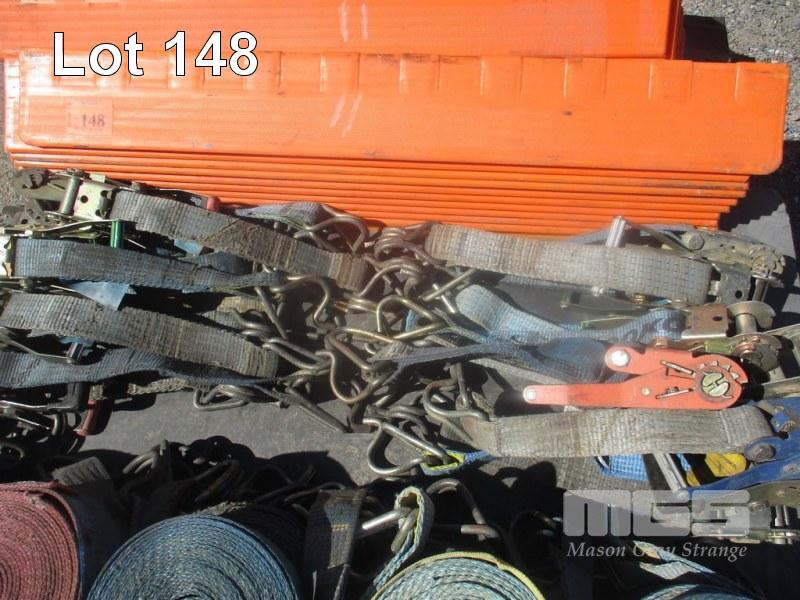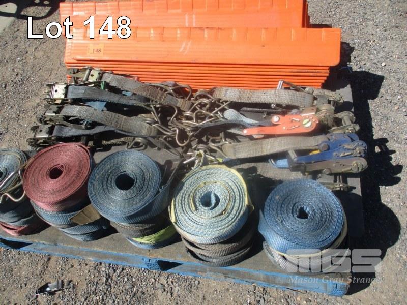 PALLET LOT ASSORTED LOAD GEAR, 22 x ANGLES, 22 x STRAPS & RATCHETS, 9/11m