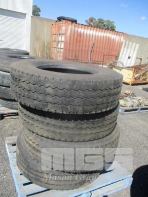 4 x DUNLOP SP581 S/H TRUCK TYRES, 11R 22.5