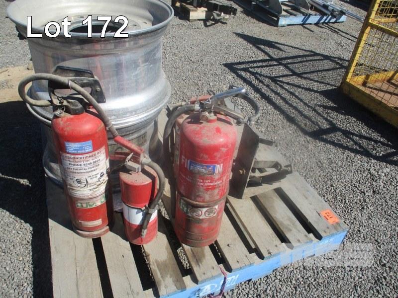 2 x ALCOA SUPER SINGLE 10 STUD TRAILER RIMS & 4 x FIRE EXTINGUISHERS