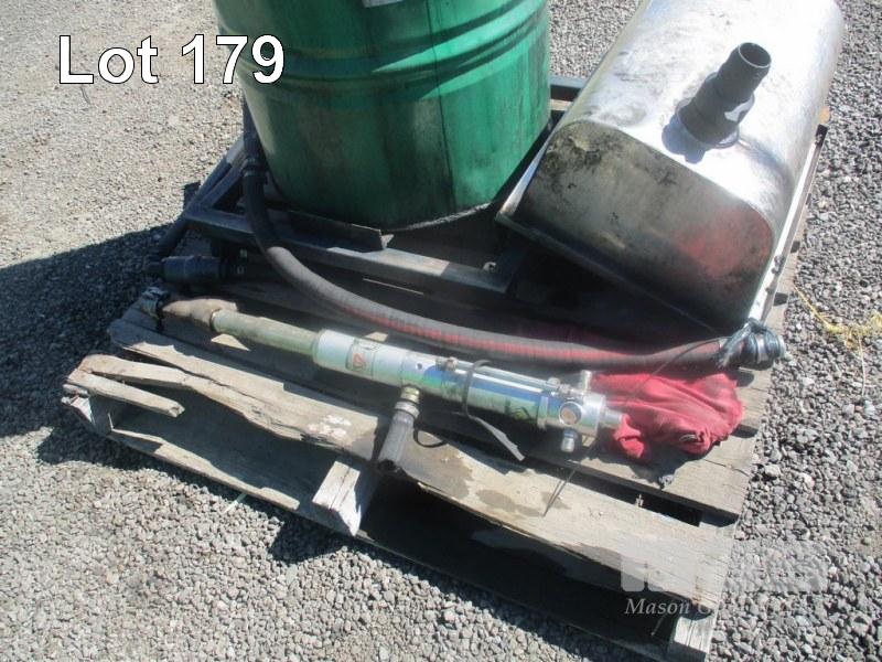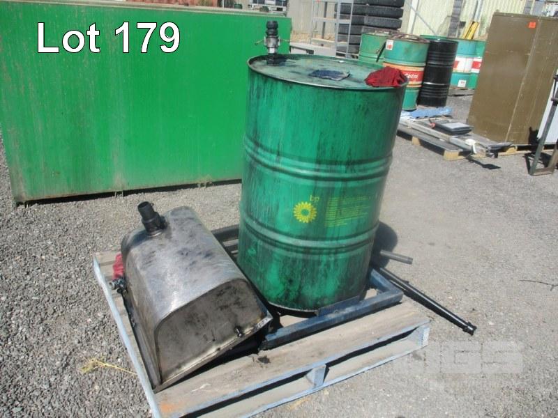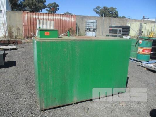 STEEL WASTE OIL TANK, 1400 LITRE, TRANSFER PUMP, & TROUGH DOM: 2011 S/NO: 1022