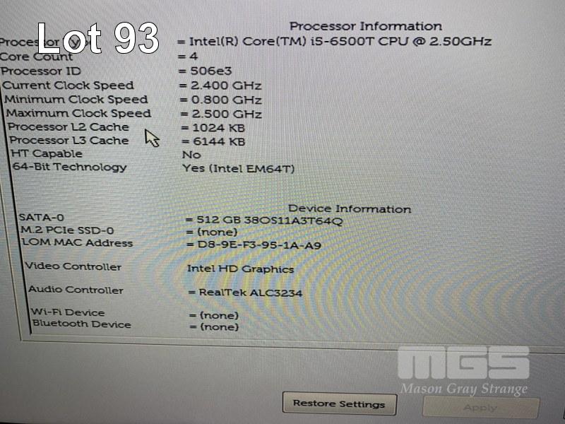 DESKTOP PC, DELL OPTIPLEX 3050 MICRO, CORE i5 6500T (6TH GEN) @ 2.1GHz, 8GB DDR4 RAM, 512GB SSD, INTEL HD VIDEO, 6 x USB, WINDOWS 10 HOME INSTALLED & POWER SUPPLY (NO KEYBOARD, NO MOUSE) S/N:4JQP6Q2