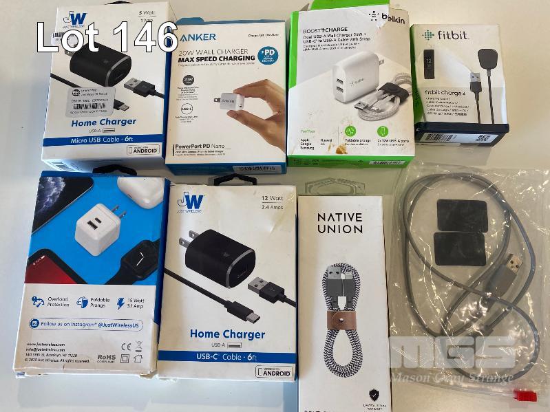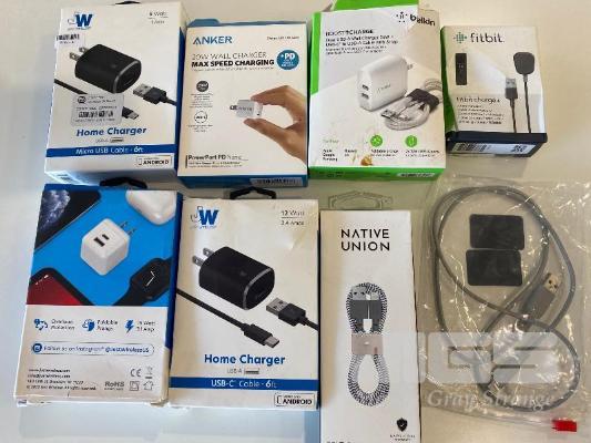 8 x ASST ACCESSORIES INC. AMERICAN AC PLUG WALL CHARGERS, FITBIT CHARGING CABLE, LIGHTNING CABLES