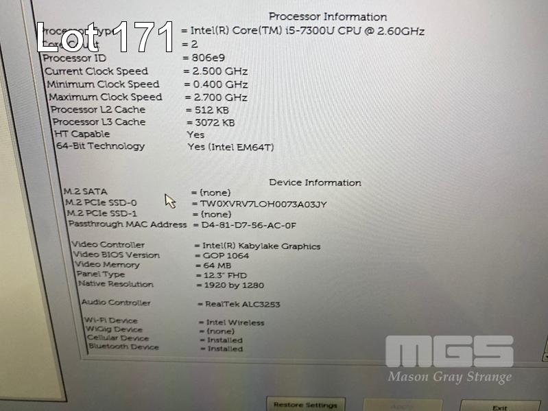 TABLET PC, DELL LATITUDE 5285, CORE i5 7300U (7TH GEN) @ 2.6GHz, 8GB DDR3 RAM, 256GB NVMe M.2 SSD, 12.3" TOUCHSCREEN (1920x1080), INTEL KABYLAKE GRAPHICS, Wi-Fi, CELLULAR, WINDOWS 10 PRO INSTALLED, KEYBOARD, TARGUS COVER & (HP) USB-C POWER SUPPLY (NOTE: TOUCHSCREEN NON-RESPONSIVE BOTTOM LH CORNER AREA) S/N:JC3D5H2