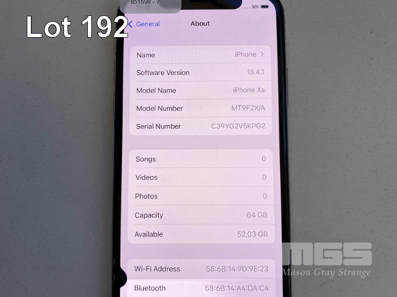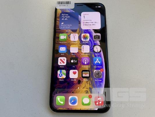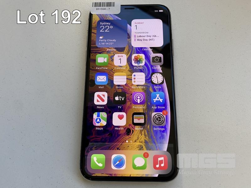 APPLE iPHONE XS, 64GB, SILVER, MODEL MT9F2X/A (NO CABLE, NO CHARGER) (NOTE: SCREEN FAULT - FLICKERS) S/N:C39YG2V5KPG2
