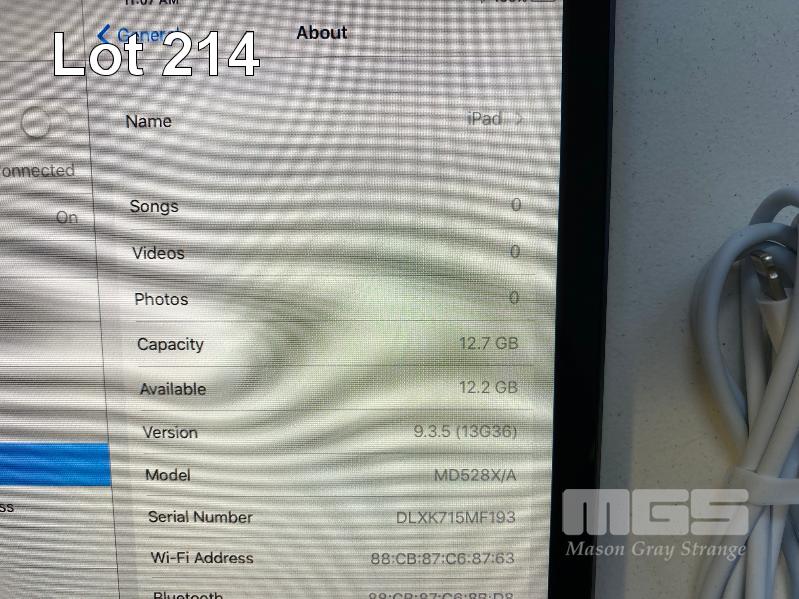 APPLE iPAD MINI, 16GB, Wi-Fi, SPACE GREY, MODEL A1432 (WITH CABLE, NO CHARGER) S/N:DLXK715MF193