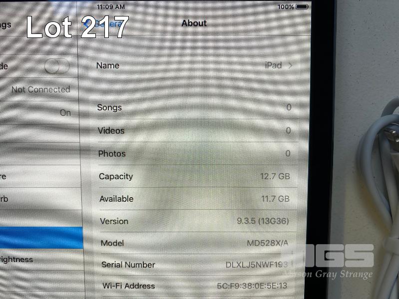 APPLE iPAD MINI, 16GB, Wi-Fi, SPACE GREY, MODEL A1432 (WITH CABLE, NO CHARGER) S/N:DLXLJ5NWF193