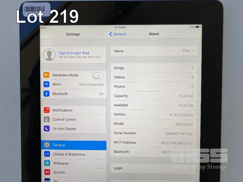 APPLE iPAD 4TH GEN, 16GB, Wi-Fi, SPACE GREY, MODEL A1458 (NO CABLE, NO CHARGER) S/N:DMQN77HFF182