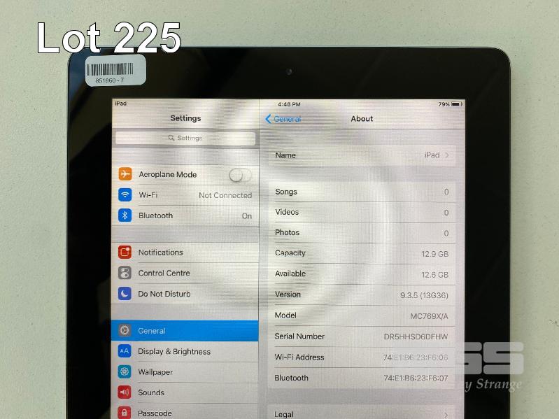 APPLE iPAD 2, 16GB, Wi-Fi, SPACE GREY, MODEL A1395 (NO CABLE, NO CHARGER) S/N:DR5HHSD6DFHW