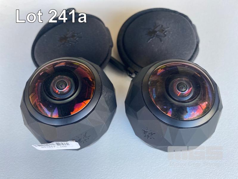 2 x 360FLY ACTION VIDEO CAMERAS, MODEL 360FLYBLK WITH POWER CRADLES ONLY (NO CABLES, NO MOUNTS)