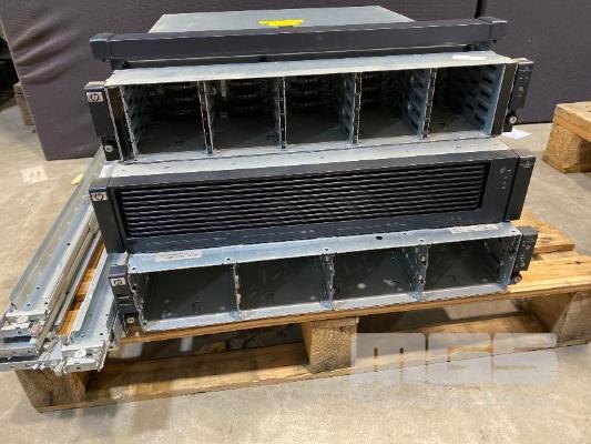 RACKMOUNT STORAGE SYSTEM (NO HDD), COMPRISING - HP STORAGEWORKS D2D4106fc BACKUP SYSTEM, 2 x XEON X5550 @ 2.66GHz, 64GB ECC DDR3 RAM (8x8GB), NO HDD (FAULTY, POWERS ON, NOT BOOTING) - HP STORAGEWORKS D2700 ENCLOSURE (NO HDD), AJ941 - HP STORAGEWORKS P6300 DUAL CONTROLLER FC ARRAY (NO HDD), AJ936A WITH 2 x AJ918-63001 WITH RAILS (NO CABLES) S/N:CZJ21104GH
