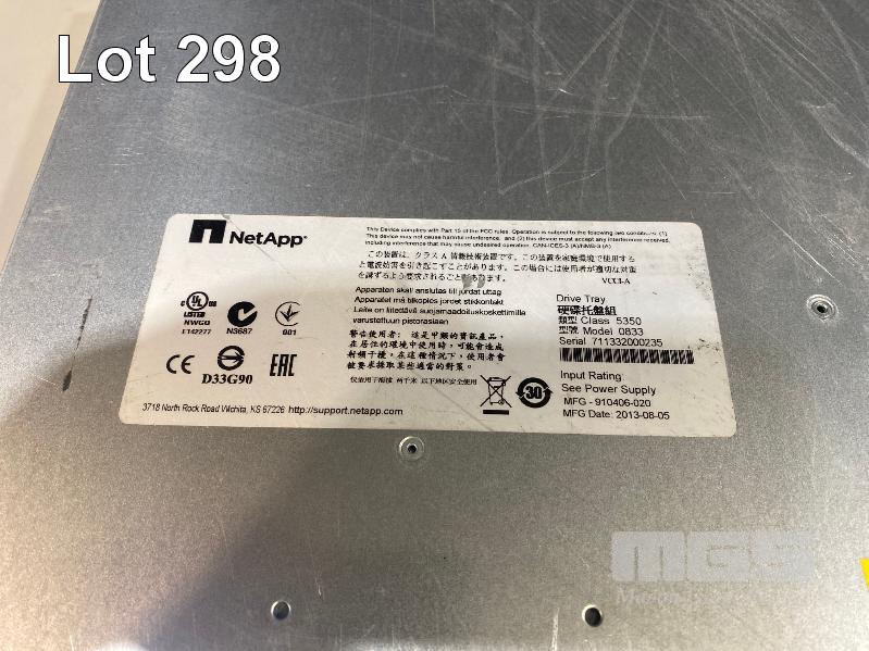RACKMOUNT STORAGE ARRAY, NETAPP MODEL 0833, 2U, 2 x 1.2TB SAS HDD, 21 x 600GB SAS HDD, 2 x SAS STORAGE CONTROLLERS, 2 x PSU
