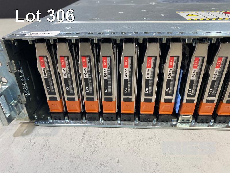 RACKMOUNT STORAGE ARRAY, EMC, MODEL SAE (100-562-712), 2U, 2 x 200GB FLASH DRIVES, 22 x 600GB SAS HDD, 2 x 6GB SAS LCC CONTROLLER CARDS (303-104-000E), 2 x PSU (NO CABLES)