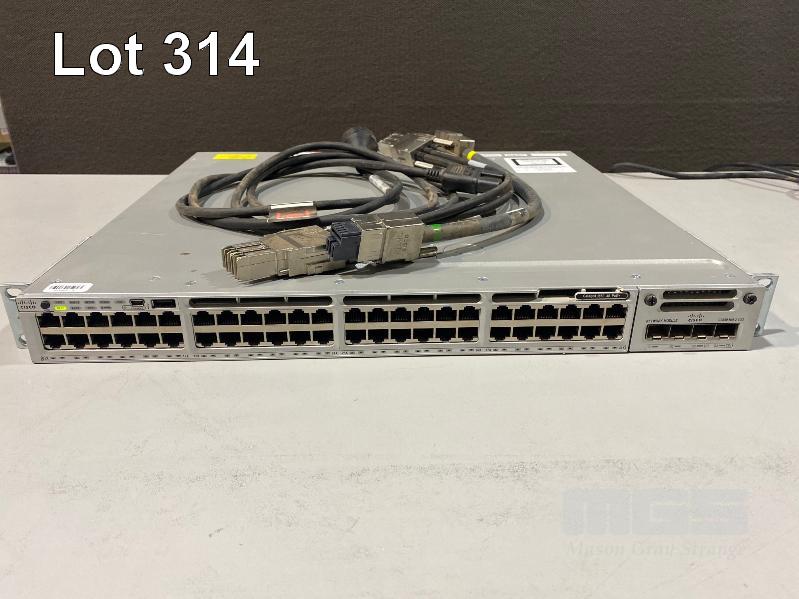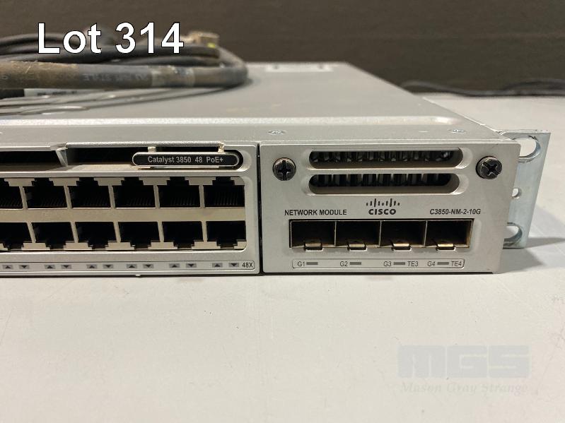 CISCO CATALYST 3850 48 PoE+ 48-PORT SWITCH, WS-C3850-48P-S V02 WITH C3850-NM-2-10G NETWORK MODULE WITH STACKING CABLES & NOTCH POWER CABLE S/N:FOC1737U0FZ