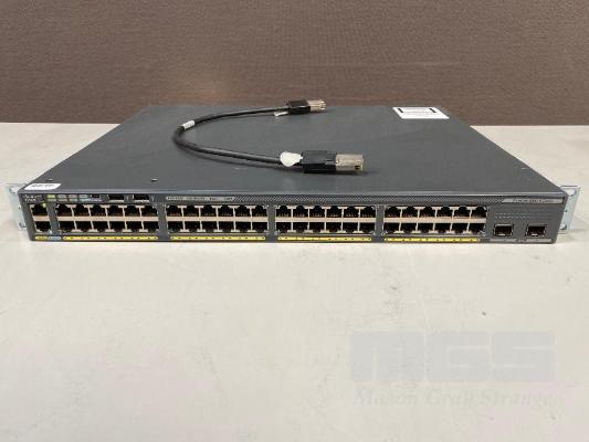 CISCO CATALYST 2960-X SERIES 10G UPLINK PoE+ 740W 48-PORT SWITCH, WS-C2960X-48FPD-L V02 WITH C2960X-STACK MODULE & 2 x STACKING CABLES S/N:FOC1842S5XX