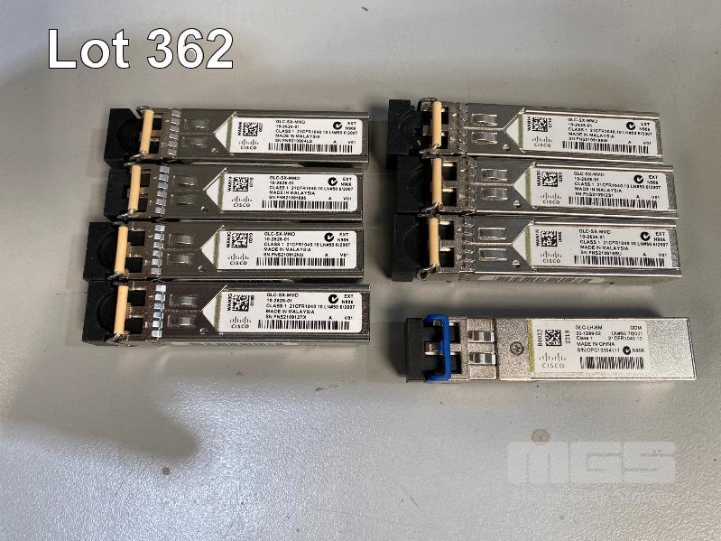 7 x CISCO GLC-SX-MMD SFP TRANSCEIVERS, 1 x CISCO GLC-LH-SM SFP TRANSCEIVER