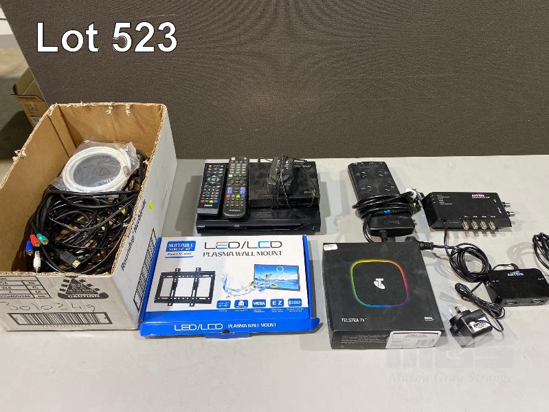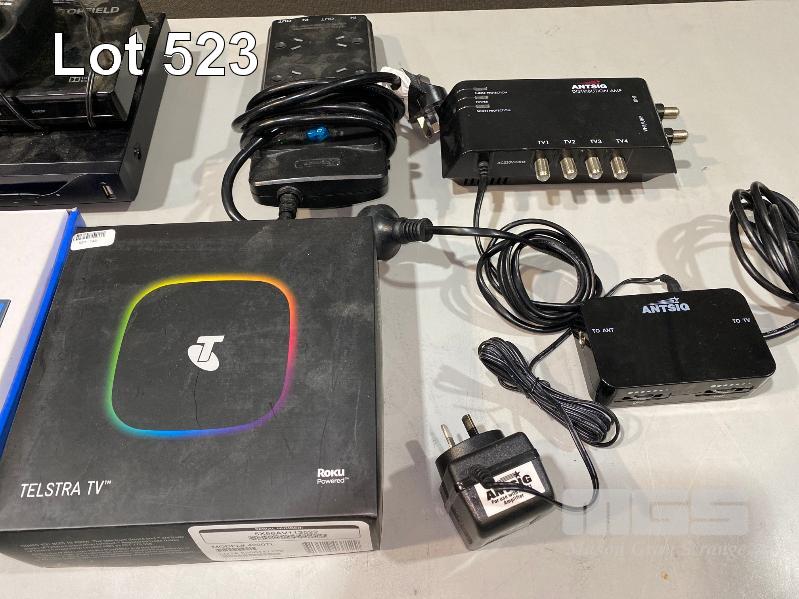 TELSTRA TV 4200L, ANTSIG DISTRIBUTION AMP, POWERBOARD, TOPFIELD SET-TOP BOX, LASER BLU-RAY PLAYER, LCD WALL MOUNT BRACKET, ASST A/V CABLES