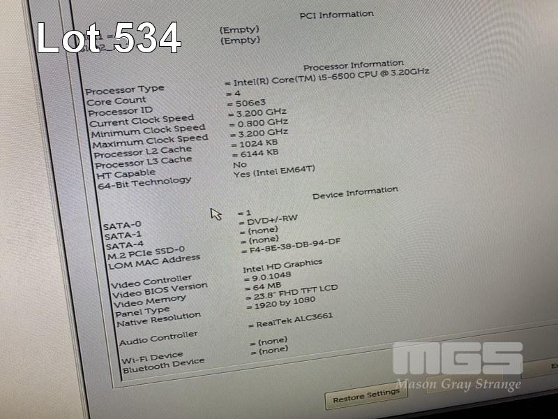ALL-IN-ONE PC, DELL OPTIPLEX 7440, CORE i5 6500 (6TH GEN) @ 3.2GHz, 8GB DDR4 RAM, 256GB SSD, DVD-RW, INBUILT 23.8" FHD WIDESCREEN (1920x1080), INTEL HD VIDEO, WEBCAM, 8 x USB, WINDOWS 10 HOME INSTALLED, KEYBOARD & MOUSE S/N:9HXZKG2