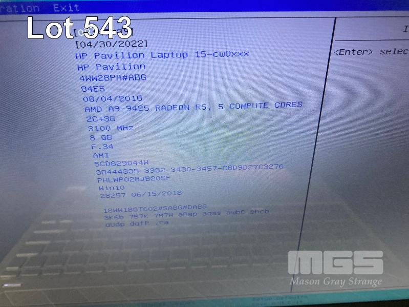 LAPTOP, HP PAVILION 15-cw0020AU (4WW28PA), AMD A9-9425 RADEON R5 @ 3.1GHz, 8GB DDR3 RAM, 1TB SATA HDD, 15.6" WIDESCREEN (1366x768), Wi-Fi, BLUETOOTH, WINDOWS 10 HOME INSTALLED & POWER SUPPLY S/N:5CD829044W