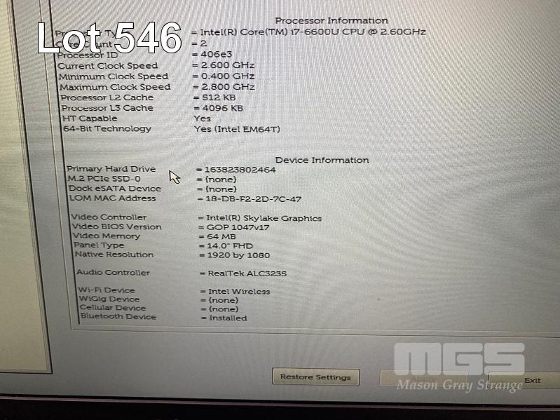 LAPTOP, DELL LATITUDE E7470, CORE i7 6600U (6TH GEN) @ 2.6GHz, 16GB DDR4 RAM, 256GB M.2 SSD, 14" WIDESCREEN (1920x1080), INTEL SKYLAKE GRAPHICS, Wi-Fi, BLUETOOTH, WINDOWS 10 HOME INSTALLED & POWER SUPPLY (NOTE: MARKS ON SCREEN) S/N:86M7CG2